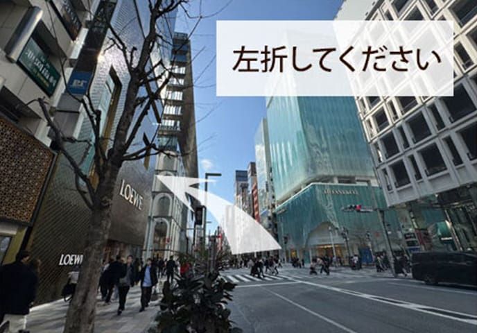 左手にGINZA SIXが見えたら、みゆき通りを左折し、直進してください。