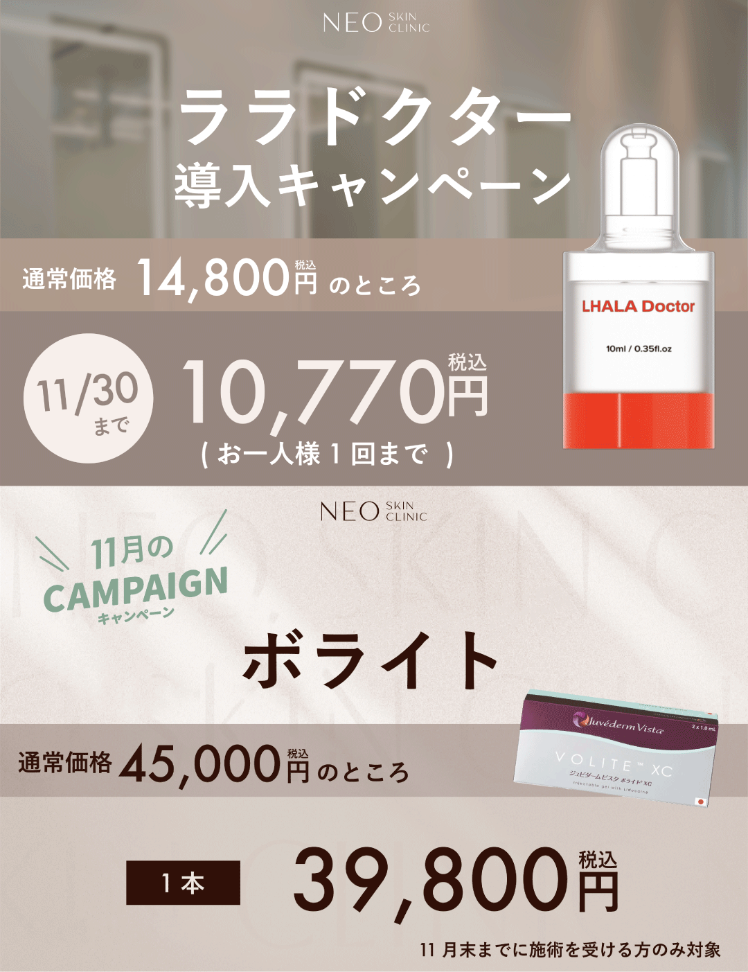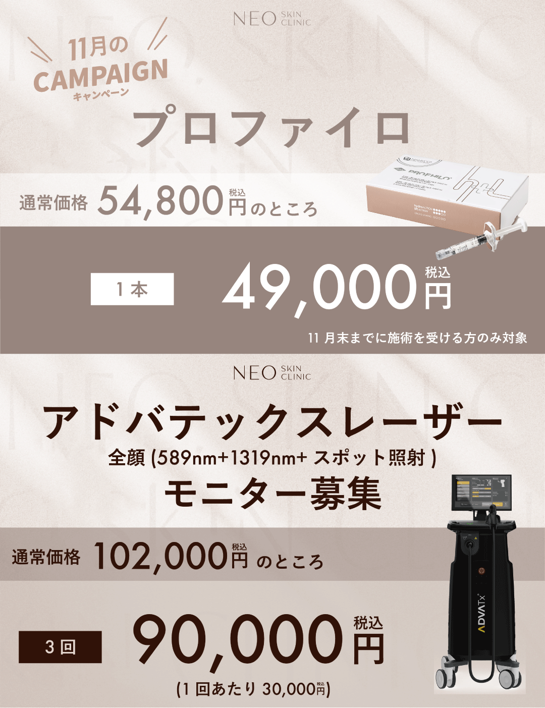 \ NEO Skin Clinic 恵比寿 11月のおすすめ治療 /